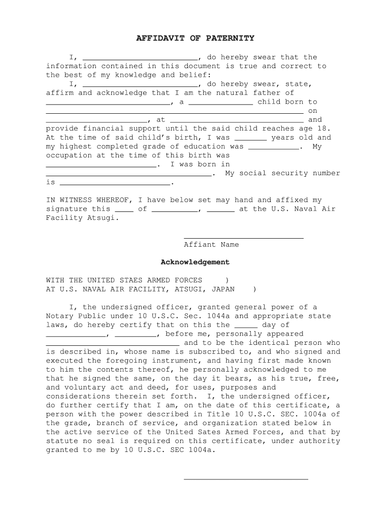 AFFIDAVIT OF PATERNITY I, do hereby swear that the information contained in this document is true and correct to the best of my knowledge and belief: I, do hereby swear, state, affirm and acknowledge
