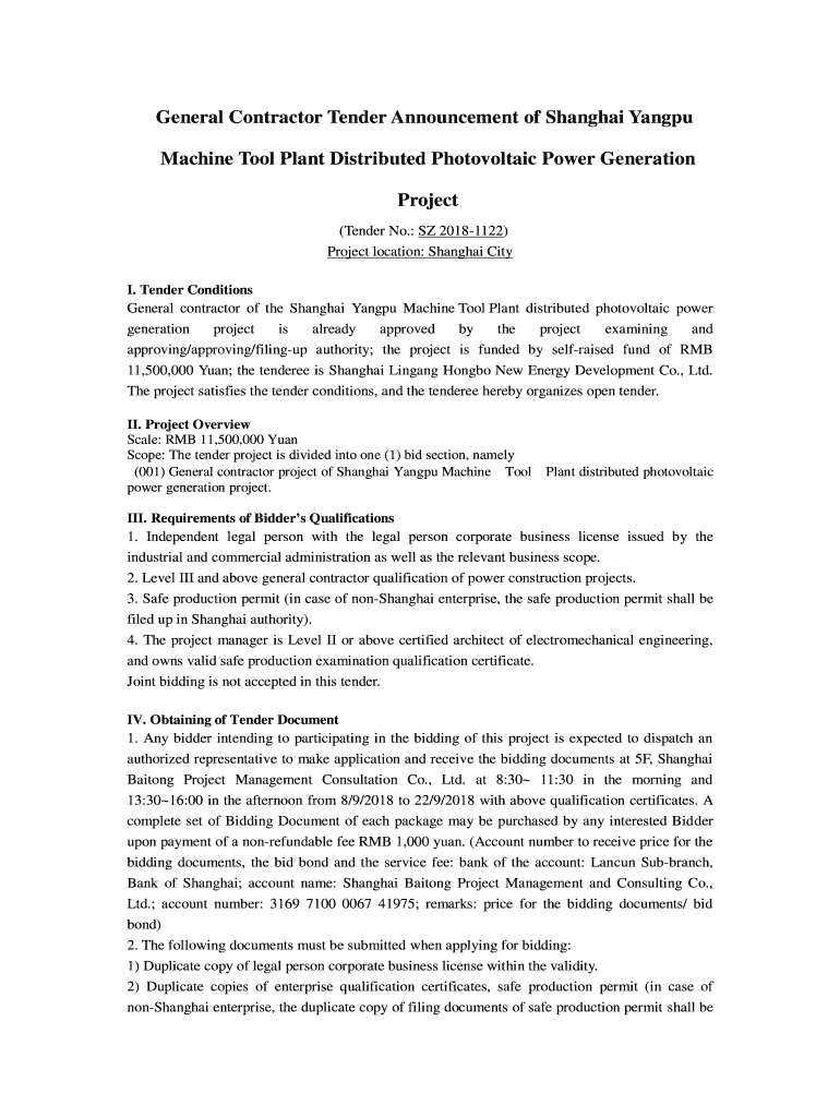 Get the free General Contractor Tender Announcement of Shanghai Yangpu ...