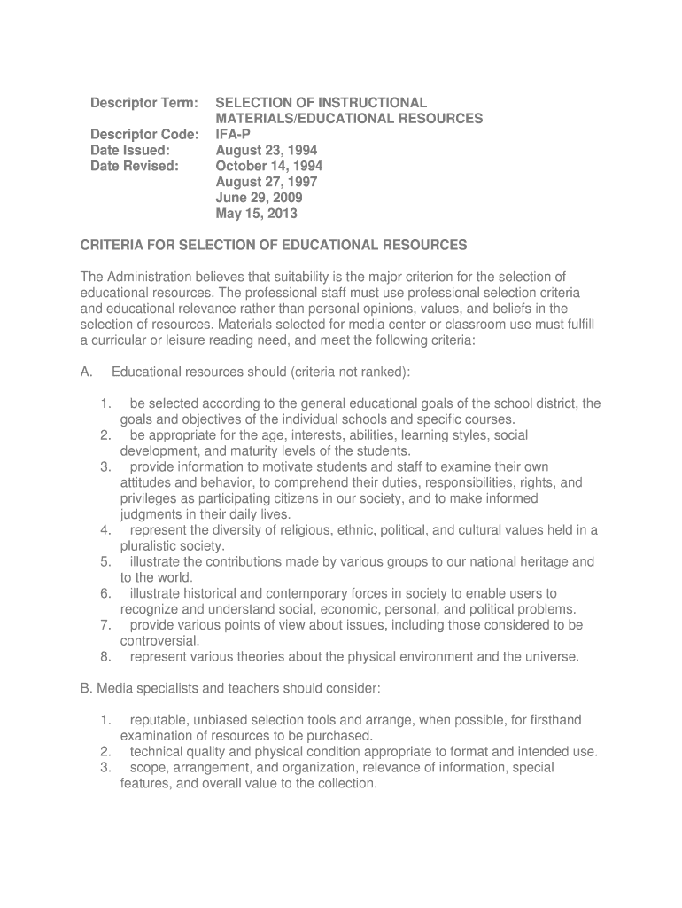 Date Revised:SELECTION OF INSTRUCTIONAL