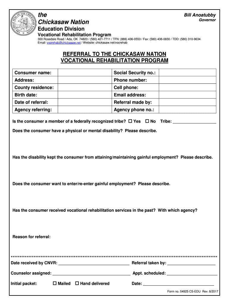 300 Rose dale Road / Ada, OK 74820 / (580) 4217711 / TEN: (888) 4360553 / Fax: (580) 4360830 / TDD: