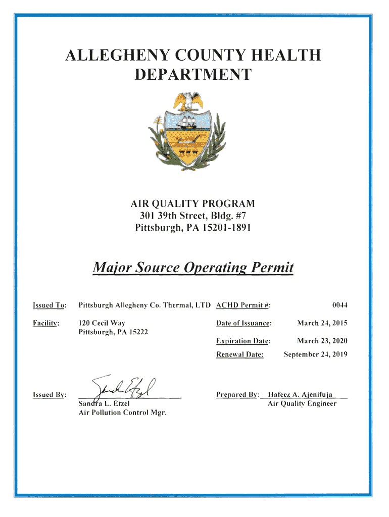 Get the free Pittsburgh Allegheny County Thermal's Title V Operating Permit