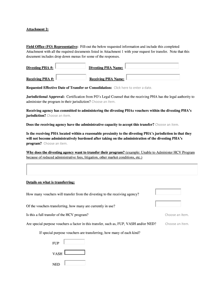 Email, fax, or share your attachment 2 field office form via URL. You can also download, print, or export forms to your preferred cloud storage service.