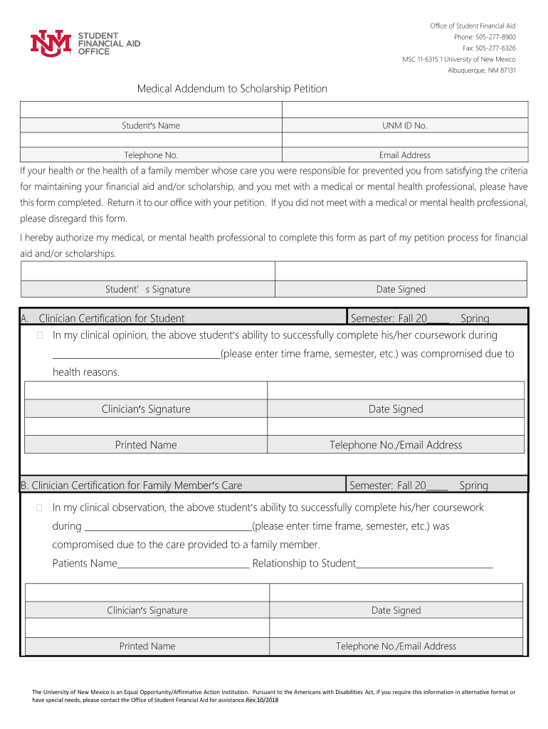 Albuquerque, NM 87131Medical Addendum to Scholarship PetitionlarshipPetitionStudents Name UNM