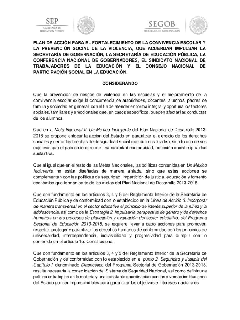 Get the free Plan de Accin para La Prevencin Social de La Violencia y ... - sep hidalgo gob