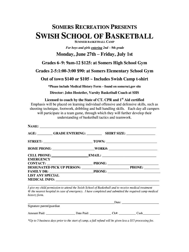 Get the free Somers Recreation Department: Town of Somers Recreation