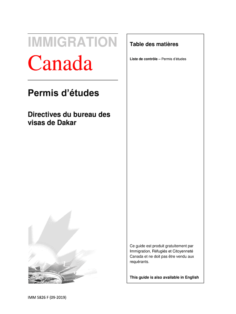 IMMIGRATIONCanadaTable DES matures List de control Permit études Directives Du bureau DES visas de Dakar Ce guide est product gratuitement par Immigration, Rugs et Citoyennet Canada et né dot pas