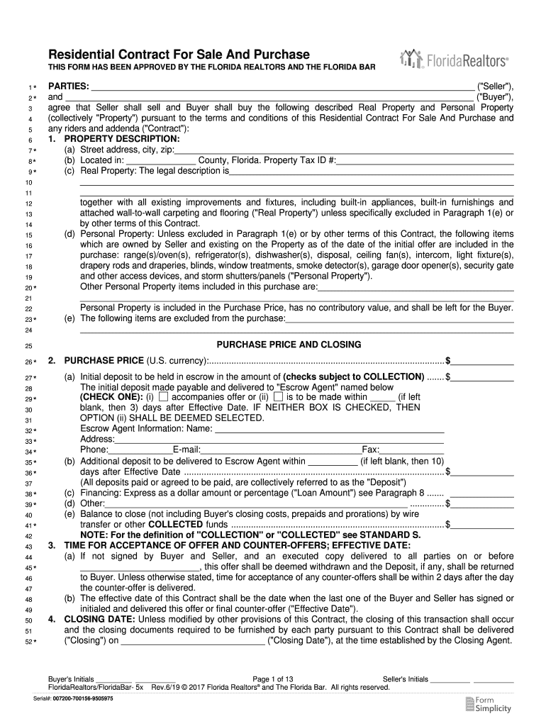 Residential Contract For Sale And Purchase THIS FORM HAS BEEN APPROVED BY THE FLORIDA REALTORS AND THE FLORIDA BAR 1× 2× 3 4 5 6 7× 8× 9× 10 11 12 13 14 15 16 17 18 19 20 × 21 22 23 * 24PARTIES: