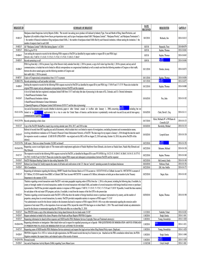 REQUEST SUMMARY OF REQUESTMarijuana related Suspicious Activity Reports (SARS) The records I am asking you to produce will indicate by Industry Type, Year and Month of filing, States/Territories,