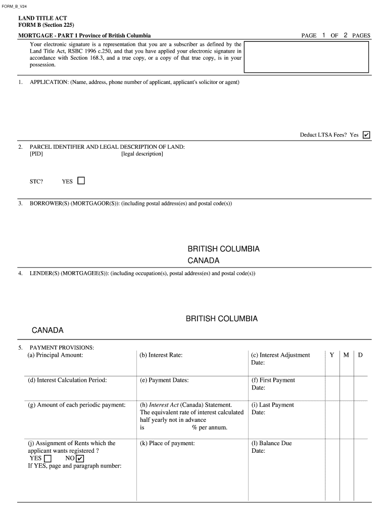 FORM B V24LAND TITLE ACT FORM B (Section 225) LOCKMORTGAGE PART 1 Province of British Columbia Your electronic signature is a representation that you are a subscriber as defined by the Land Title