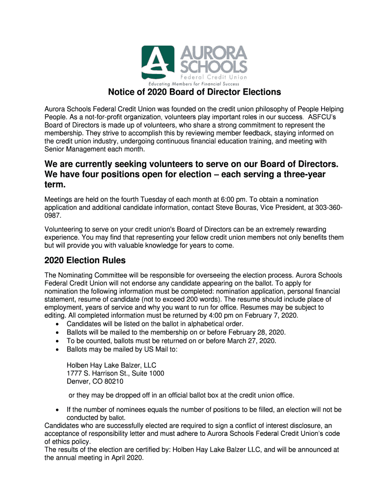 Aurora Schools Federal Credit Union was founded on the credit union philosophy of People Helping