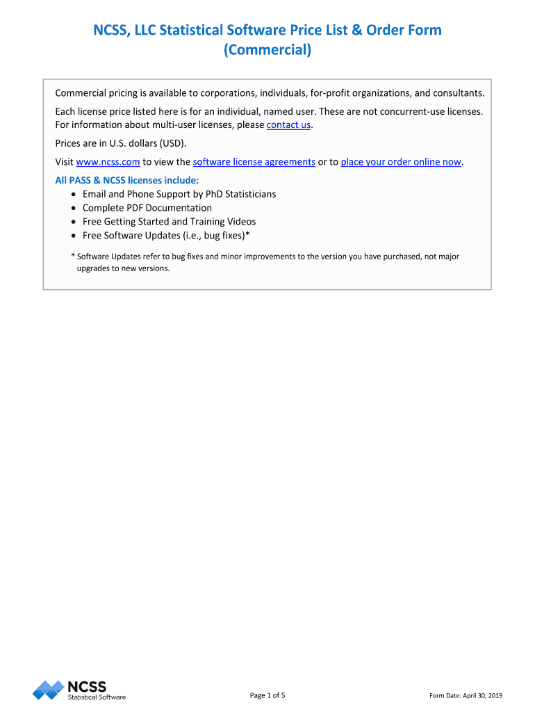 Get the free Get the free NCSS, LLC Statistical Software Price List & Order Form
