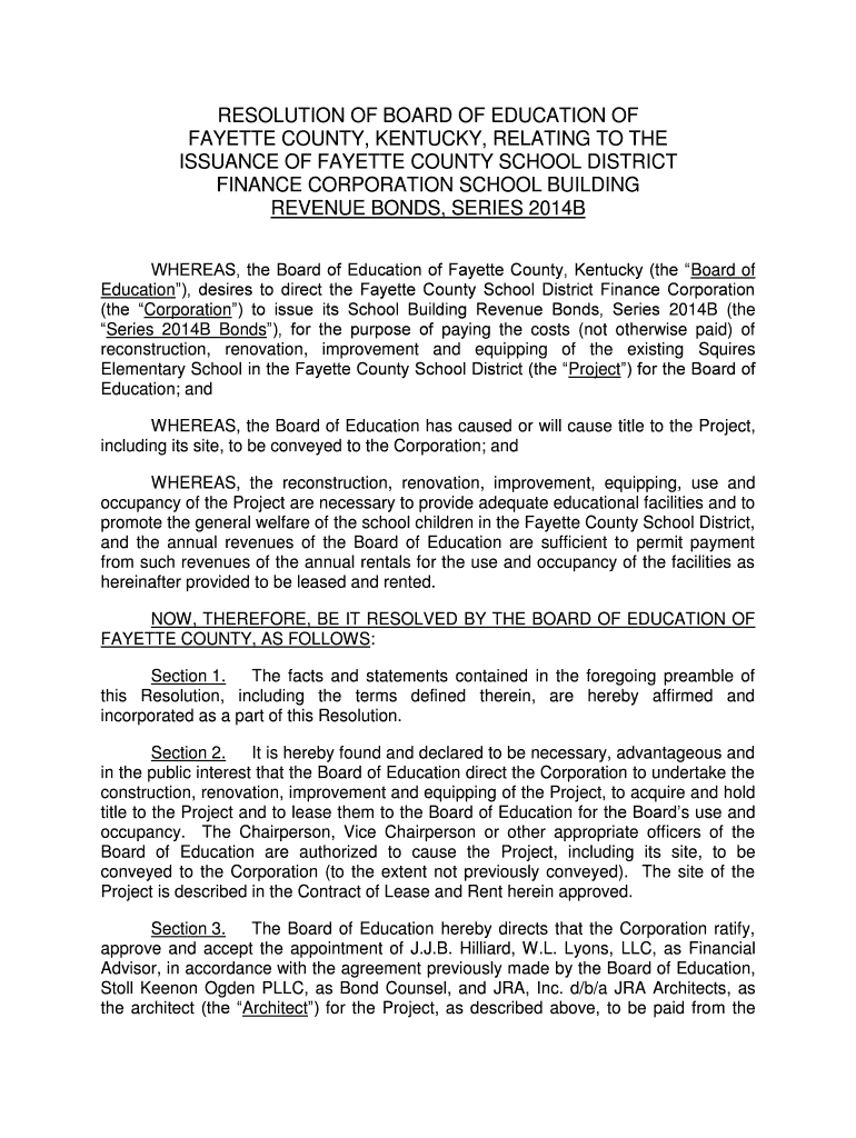 RESOLUTION OF BOARD OF EDUCATION OF