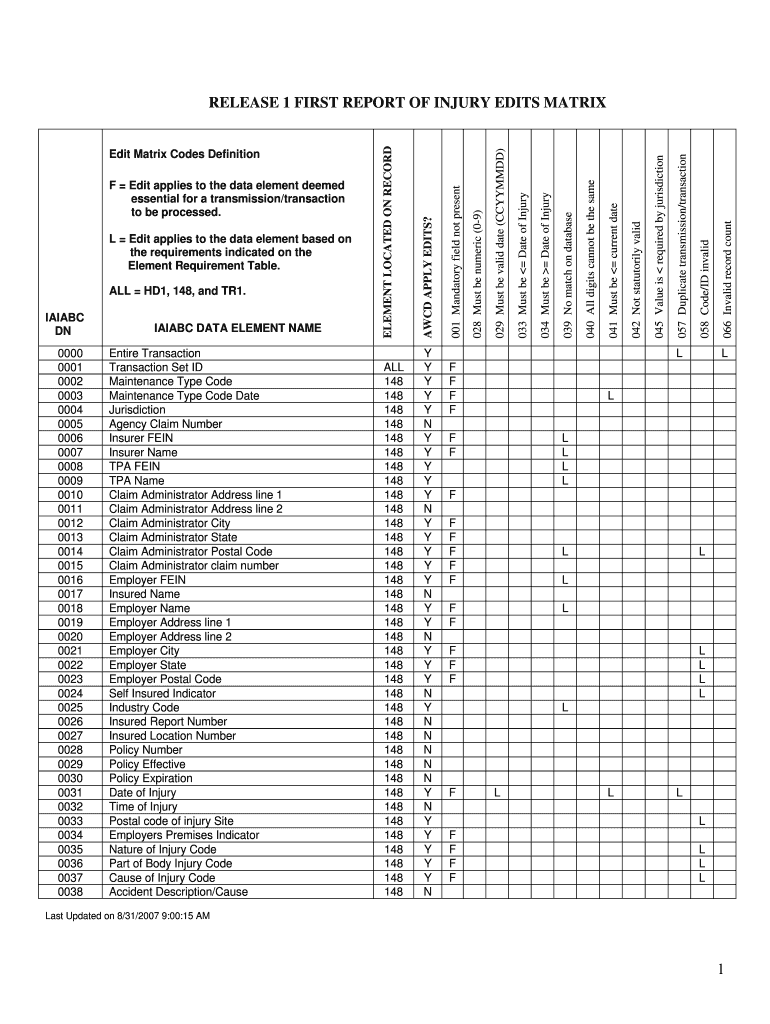 Get the free 1 RELEASE 1 FIRST REPORT OF INJURY EDITS MATRIX - labor alabama