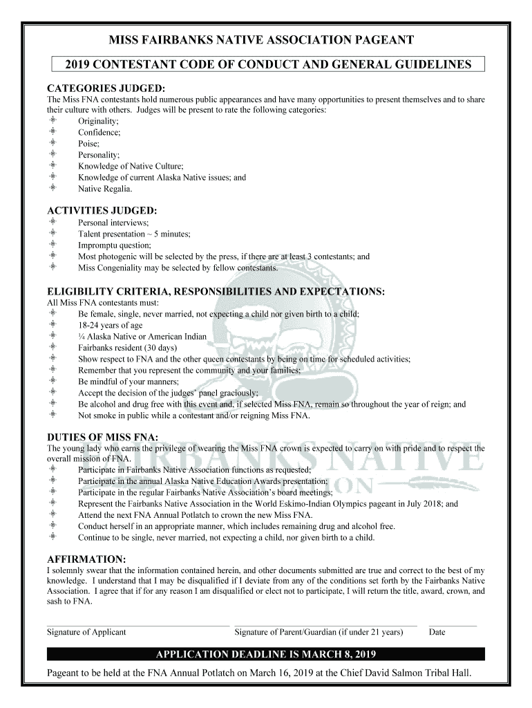 2019 CONTESTANT CODE OF CONDUCT AND GENERAL GUIDELINES