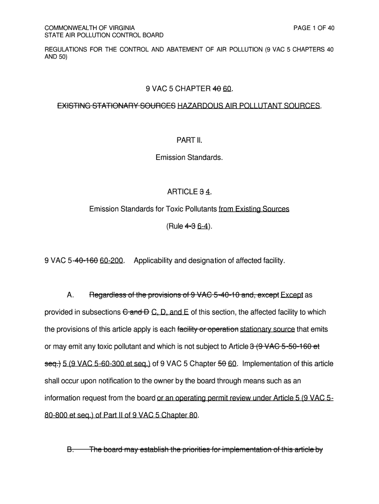 STATE AIR POLLUTION CONTROL BOARDING 1 OF 40REGULATIONS FOR THE CONTROL AND ABATEMENT OF AIR POLLUTION (9 VAC 5 CHAPTERS 40