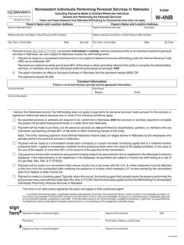 Nonresident Individuals Performing Personal Services in Nebraska