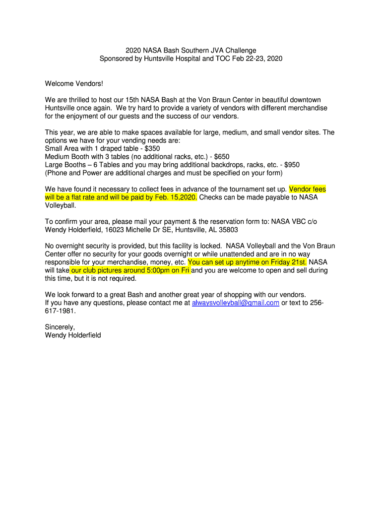 Get the free NASA Bash Vendor Information - (NASA) Volleyball