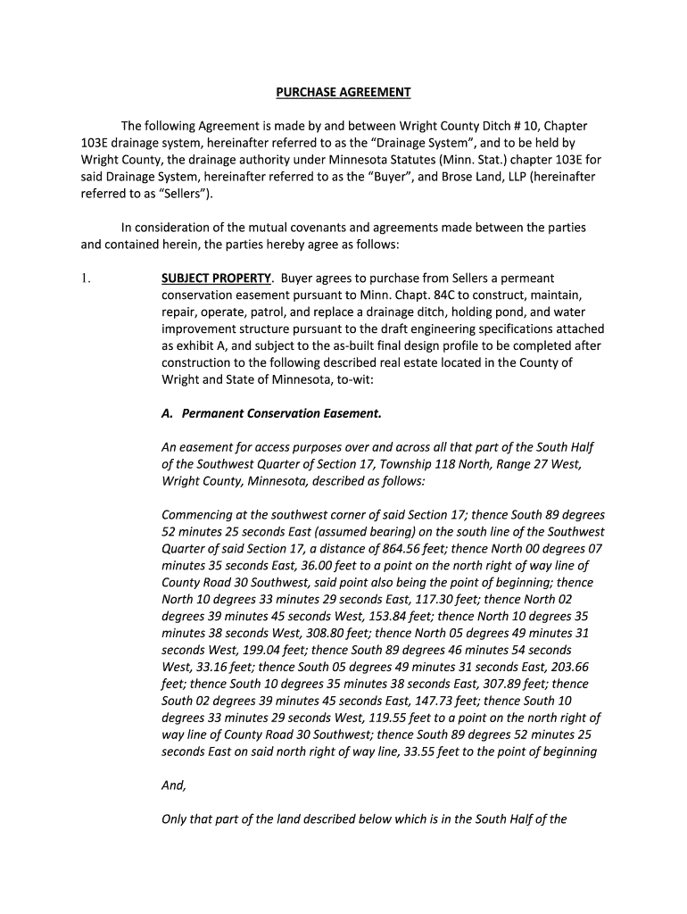 The following Agreement is made by and between Wright County Ditch # 10, Chapter