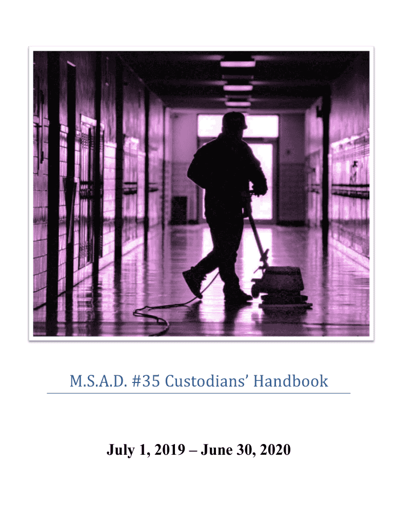 M.S.A.D. #35 Custodians Handbook July 1, 2019, June 30, 2020This handbook outlines salary and benefit provisions for employees who work in the school facilities/custodial department. All custodians'
