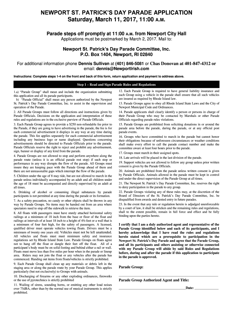 NEWPORT ST. PATRICKS Day PARADE APPLICATION