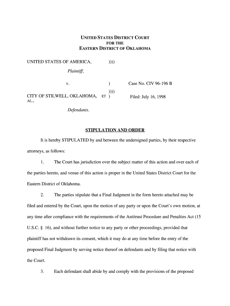 EASTERN DISTRICT OF OKLAHOMAUNITED STATES OF AMERICA,))))Plaintiff,