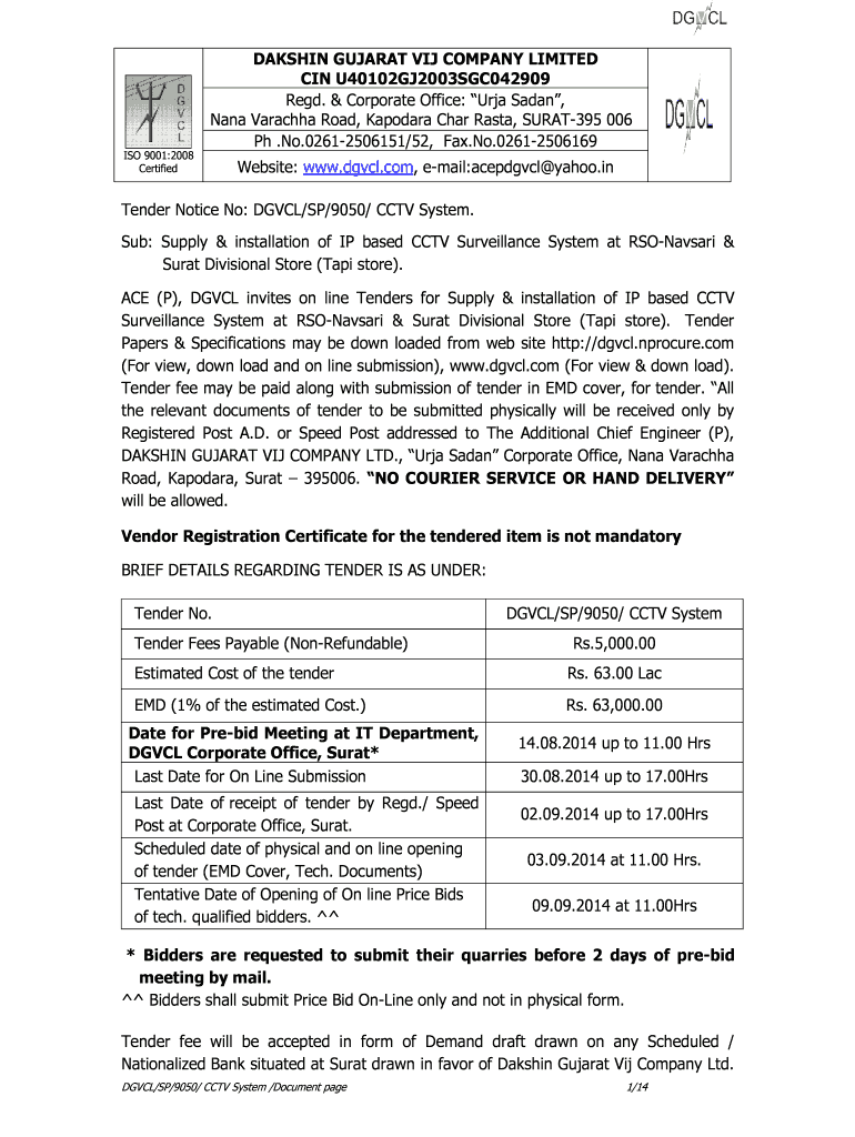 DASHING GUJARAT VIA COMPANY LIMITED IN U40102GJ2003SGC042909 Red. & Corporate Office: Ursa Sudan, Nana Karachi Road, Vadodara Char Rasta, SURAT395 006 pH. No.02612506151/52, Fax. No.02612506169 ISO