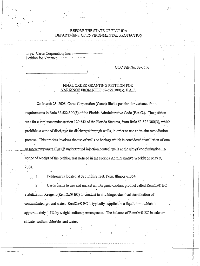 Get the free Before the State of Florida Department of Environmental Protection Carus Chemical Co...