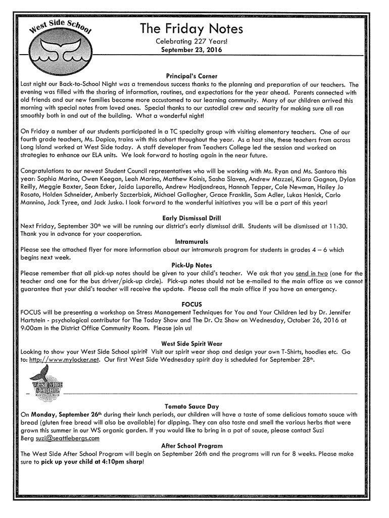 September 23, 2016Principal\'s Corner