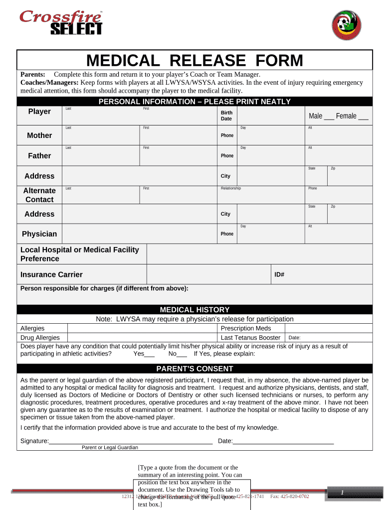 Instructions for the form Medical Release - Lake Washington Youth Soccer ...