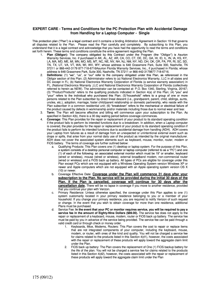 EXPERT CARE Terms and Conditions for the PC Protection Plan with Accidental Damage from Handling for a Laptop Computer Single This protection plan (Plan) is a legal contract, and it contains a binding