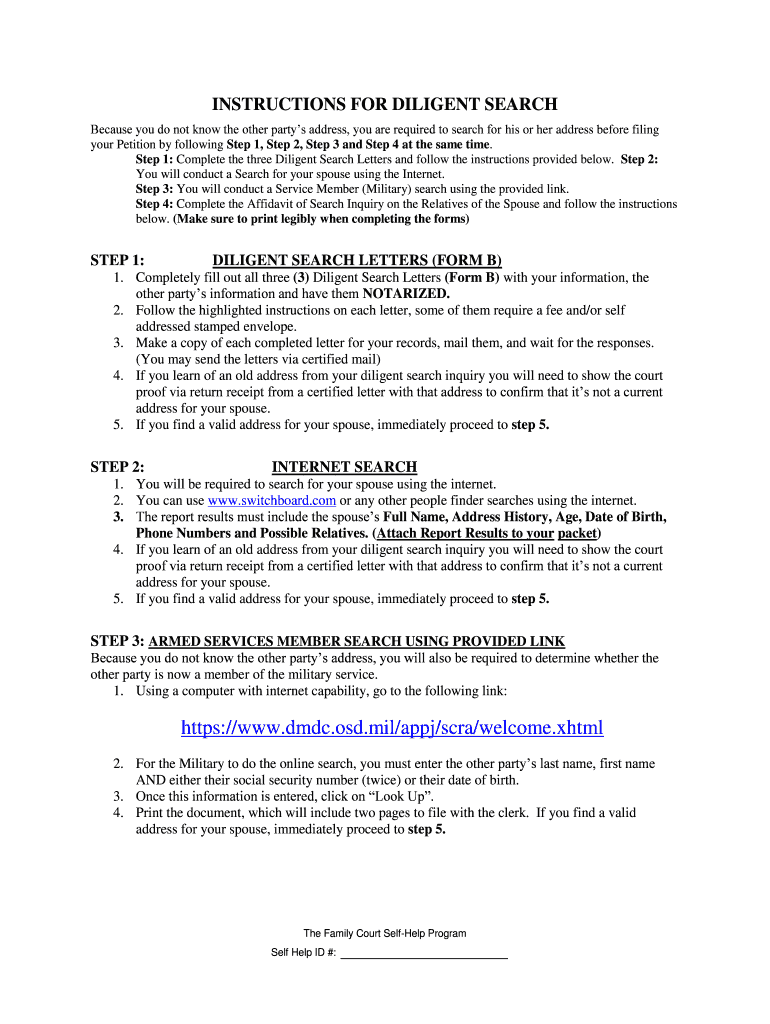 INSTRUCTIONS FOR DILIGENT SEARCH