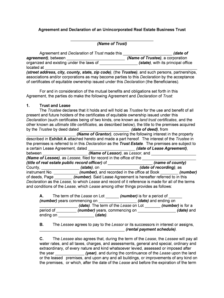 The Real Estate Business Trust Agreement encompasses several key components that dictate its functionality: