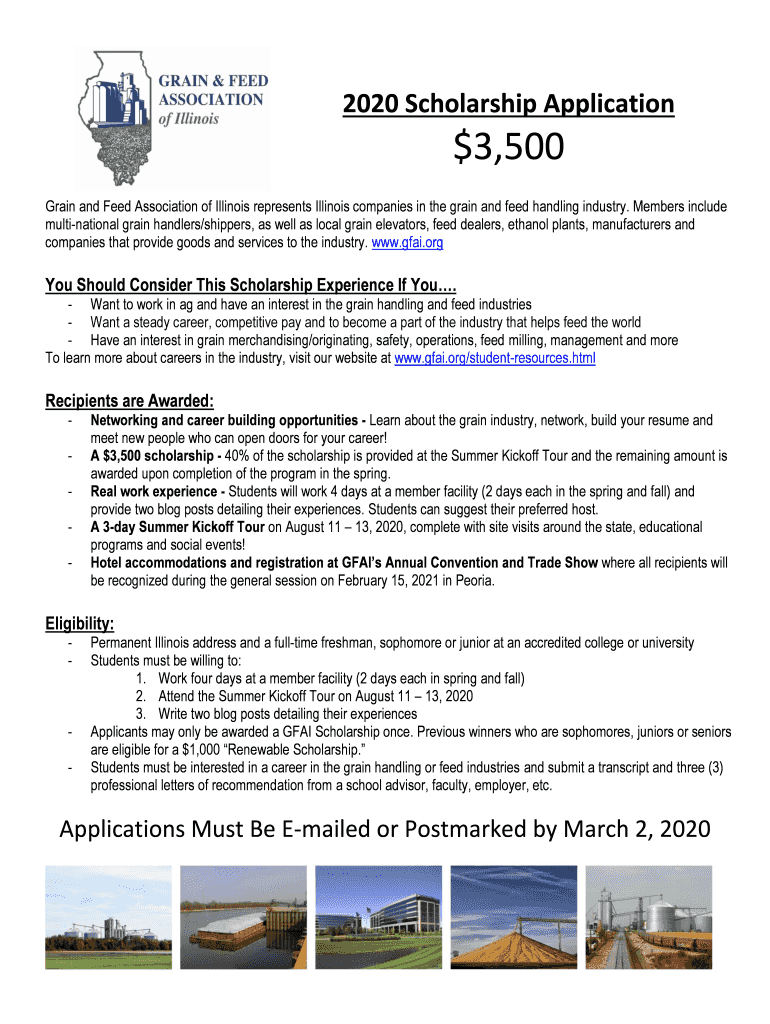 2020 Scholarship Application$3,500 Grain and Feed Association of Illinois represents Illinois companies in the grain and feed handling industry. Members include multinational grain handlers/shippers,