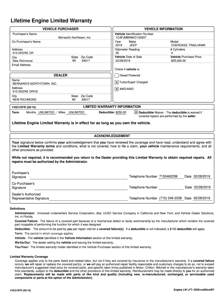 Lifetime Engine Limited Warranty