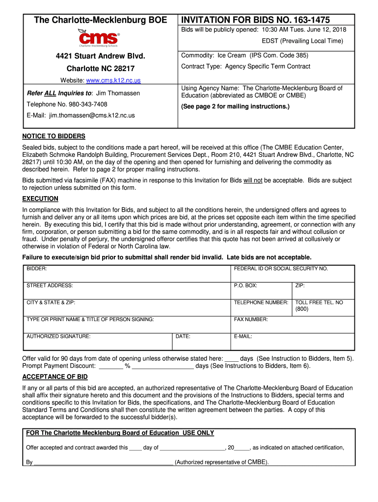 The CharlotteMecklenburg INVITATION FOR BIDS NO. 1631475