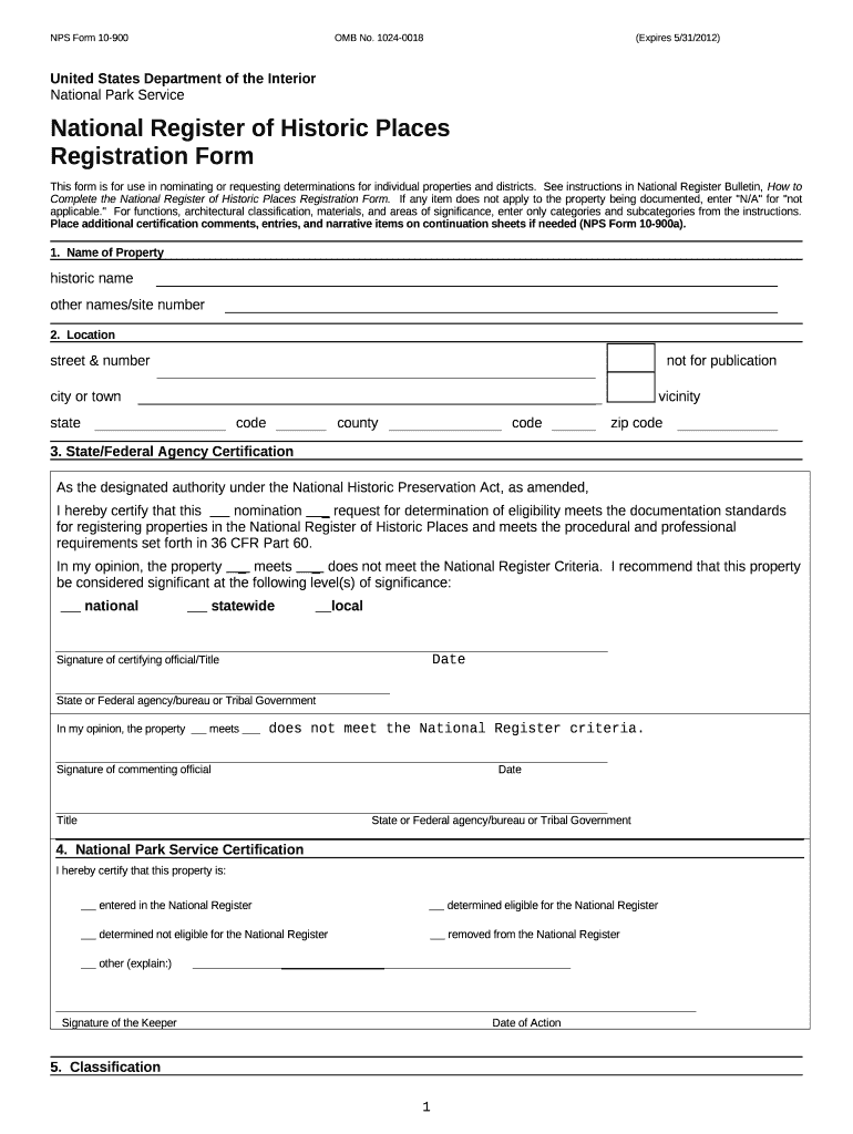 Template National Register Nomination - Office of Planning - planning dc instructions