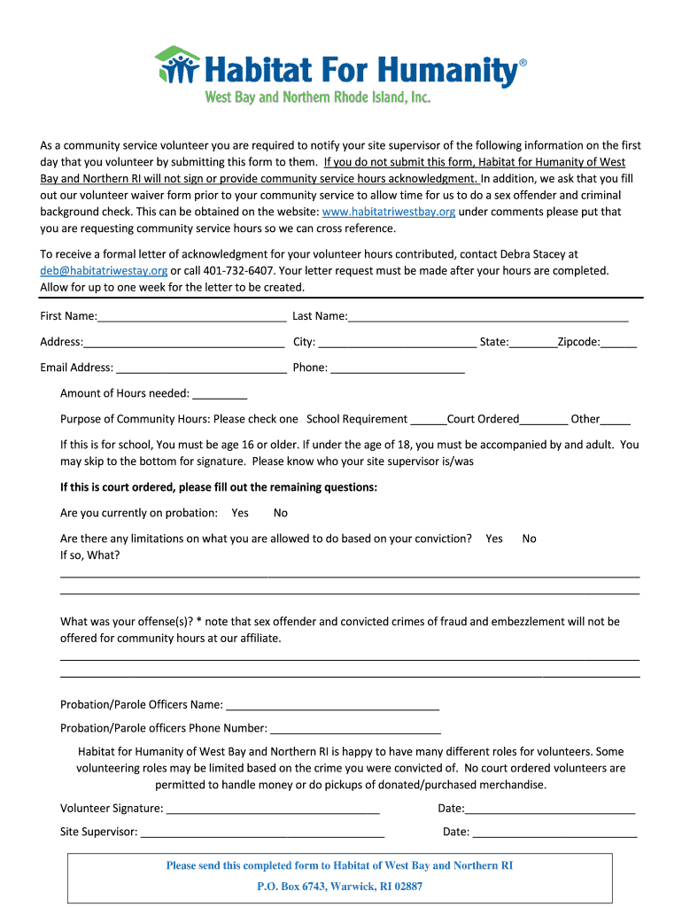 As a community service volunteer you are required to notify your site supervisor of the following information on the first
