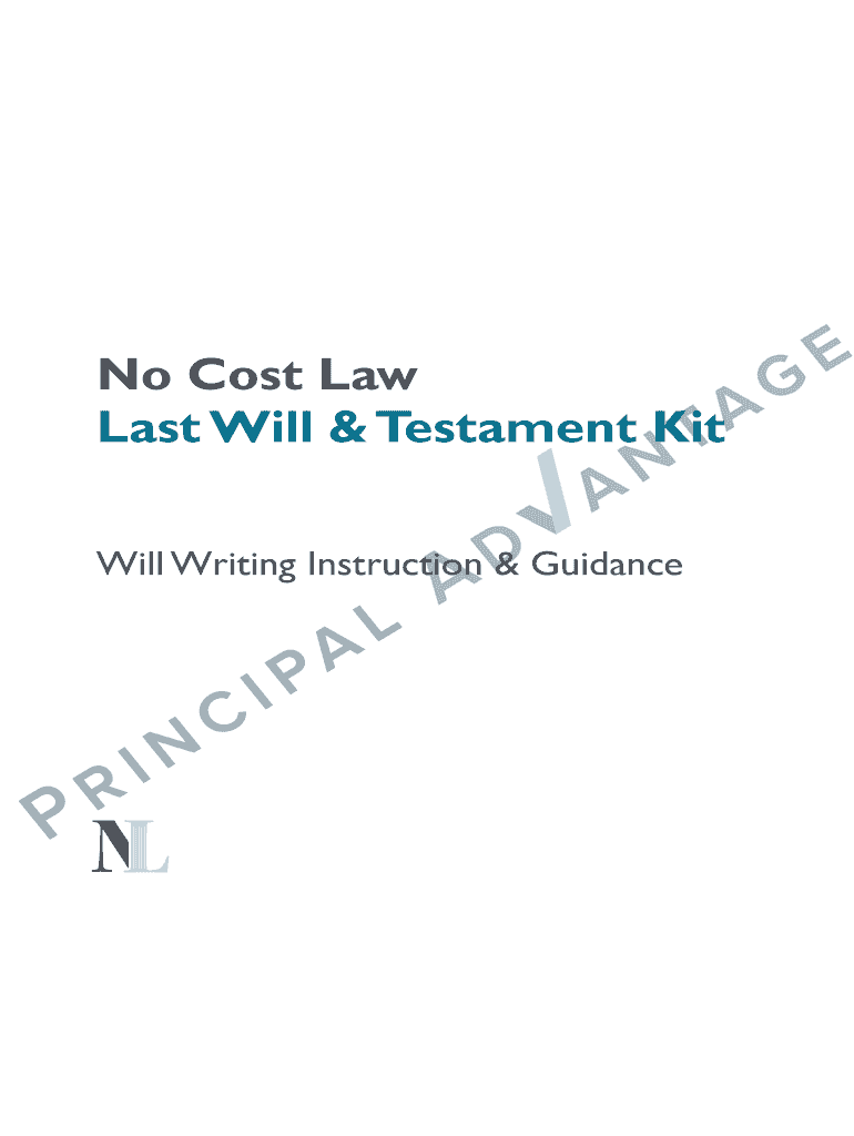 No Cost Law Last Will & Testament Kit Will Writing Instruction & GuidanceAbout the Will & Testament Why do you need to write a will? Having a will prepared is one of the most important things you