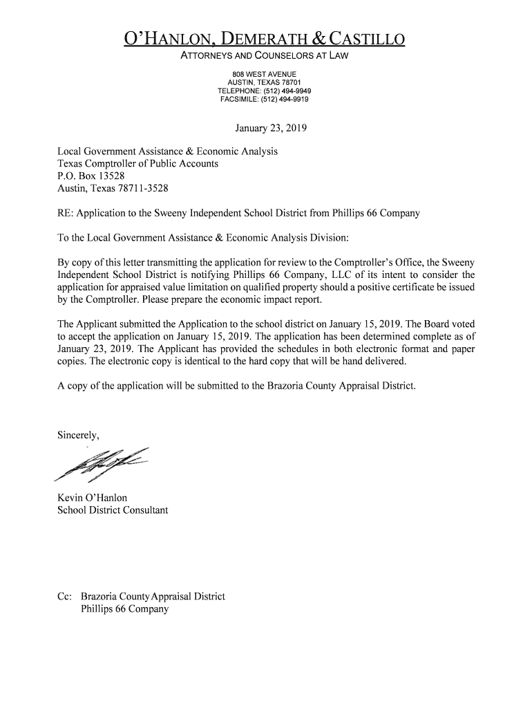 Get the free RE: Application to the Sweeny Independent School District from Phillips 66 Company