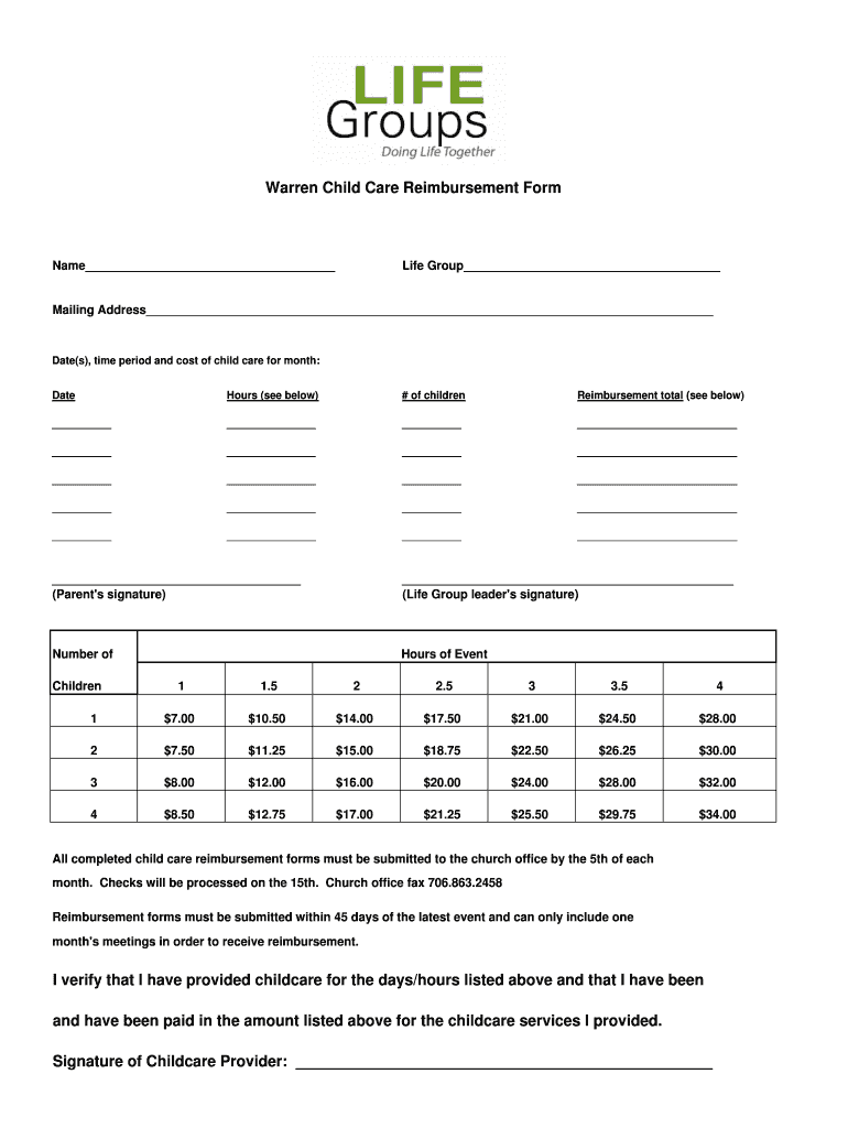 Get the free Childcare Reimbursement with providers signature (2) - warrenbaptist