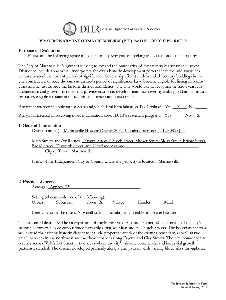 Get the free PIF - DHRVirginia Department of Historic Resources