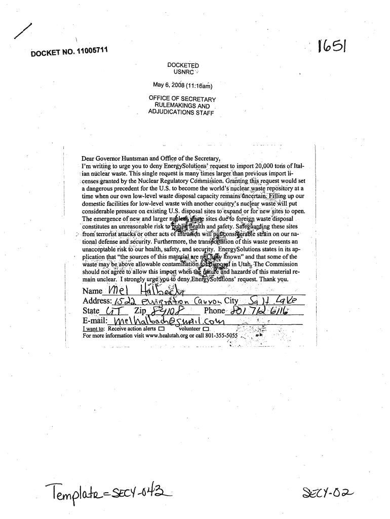 I\'m writing to urge you to deny EnergySolutions\'