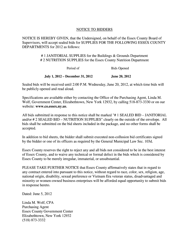 Get the free NOTICE TO BIDDERS - Essex County, New York