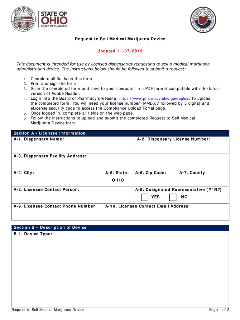 This document is intended for use by licensed dispensaries requesting to sell a medical marijuana