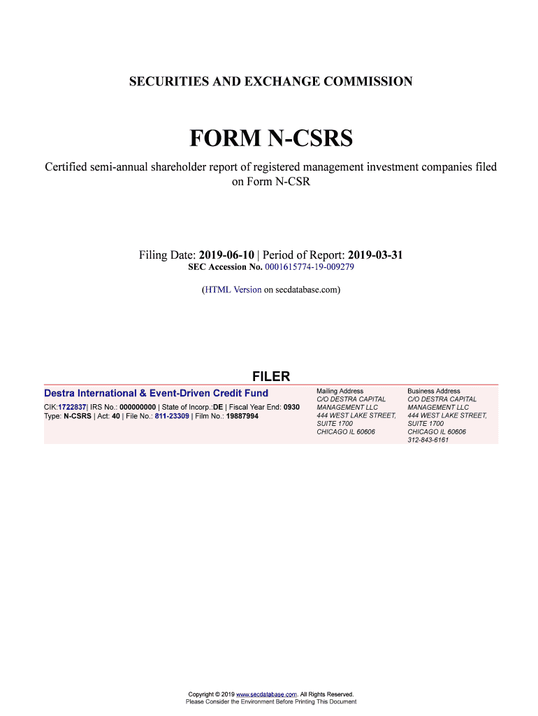 Get the free Destra International & Event-Driven Credit Fund Form N-CSRS Filed 2019-06-10...