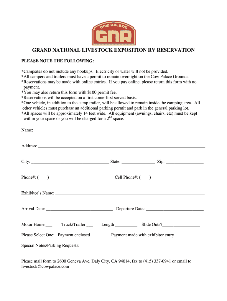 GRAND NATIONAL LIVESTOCK EXPOSITION RV RESERVATION