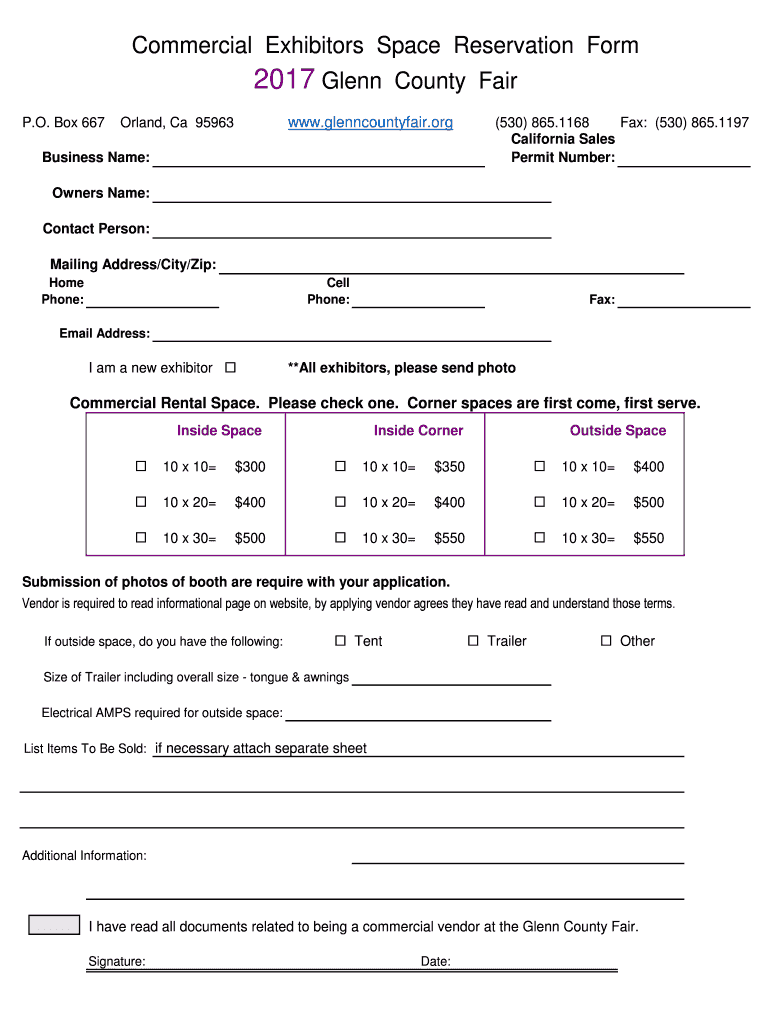 Commercial Exhibitors Space Reservation Form2017 Glenn County Fair