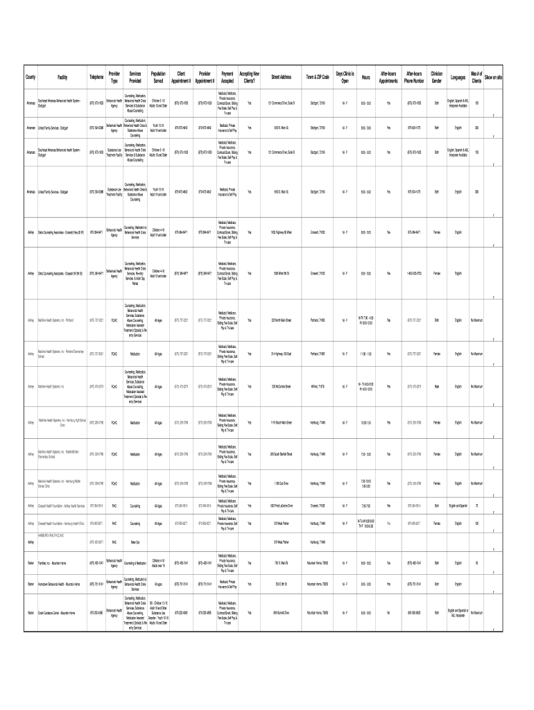 Individuals or organizations providing behavioral health services in Arkansas, as well as those participating in certain state-managed health programs, are generally required to file Souformast Arkansas Behavioral Health forms.