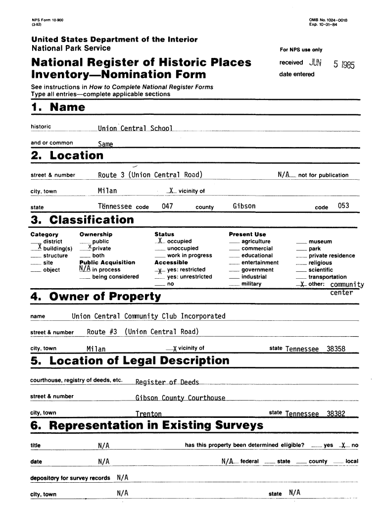 NPS Form 10900 (382)OMB No. 1024OO18 Exp. 103184United States Department of the Interior National Park ServiceNow NPS use national Register of Historic Places InventoryNomination Form received JUN
