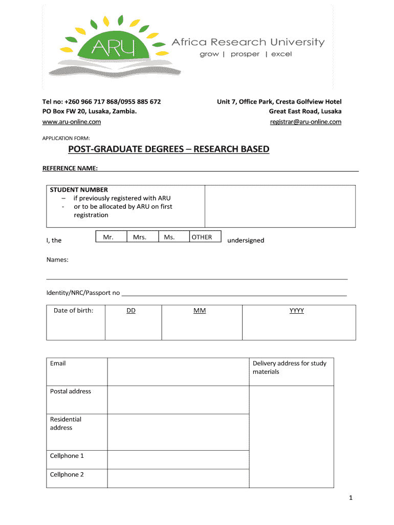 Tel no: +260 966 717 868/0955 885 672 PO Box FW 20, Lusaka, Zambia. Unit 7, Office Park, Crest Golf view Hotel Great East Road, Lusaka.online.com registrar online. Complication FORM:POSTGRADUATE DEGREES